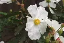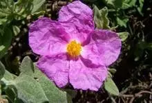 岩蔷薇是半日花科岩蔷薇属植物,多年生直立亚灌木,高约1.5-2.5米,全体具胶黏腺体。枝条褐色,侧枝分为生长枝和结果枝。单叶对生,披针形至线状披针形,长5-8厘米,宽0.5-1.5厘米。…全部>>