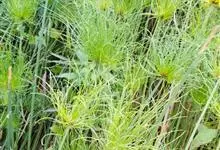 纸莎草是莎草科、莎草属的植物,具有粗壮的根状茎,高达2-3米,茎秆簇生,粗壮,直立,钝三棱形。叶退化呈鞘状,茎秆顶端着生总苞片,呈伞状簇生,总苞片叶状,披针形,顶生花序伞梗极多,细长下垂。瘦果灰褐色,…全部>>