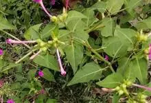 即紫茉莉,英文名:Four-o'clock,Marvel of Peru,为紫茉莉科、紫茉莉属多年生草本植物,一年生栽培。株高50~80cm。根粗壮,茎多分枝而散生。叶对生,卵形或心脏形。花数朵簇生…全部>>