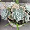 蓝石莲是景天科、拟石莲花属的多肉植物。茎部粗壮,成熟植株茎部木质化。叶片莲座型密集排列,株径不会很大,叶片相对较薄,常年绿色,表面布有白色粉末,中部凹陷,呈倒水滴状。叶尖较尖,叶缘光滑无褶皱,…全部>>