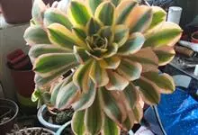 红缘莲花掌属蔷薇目、景天科植物,原产大西洋的加那利群岛。质厚,蓝绿色,被白霜,叶缘红褐色。聚伞花序,花浅黄色,有时带红晕。叶形叶色较美,有一定的观赏价值,多盆栽用于点缀室内;可放置于电视、电脑旁,…全部>>