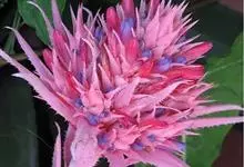 美叶光萼荷是凤梨科光萼荷属的多年生附生常绿草本植物。叶基生,莲座状叶丛基部围成筒状,叶呈绿色条形至剑形,被灰色鳞片;花葶直立,花序穗状,密集成阔圆锥状球形花头,苞片呈淡玫瑰红色革质,先端尖,小花无柄,…全部>>