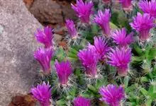 紫晃星是番杏科仙花属多年生肉质植物,植株呈常绿灌木状,具肥厚粗大的肉质根,其表皮浅黄色,稍粗糙、肉质叶对生,顶端有20-25根白色刚毛,叶长1.5-2厘米,粗0.5厘米。花淡紫红色直径约4厘米,…全部>>