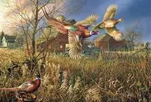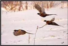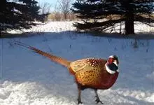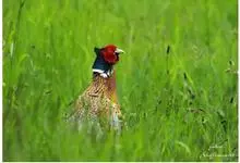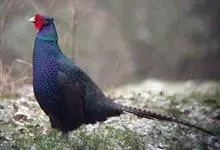 环颈雉是雉科、雉属的一种走禽,共有30个亚种。体重900-1050克,体长53-89厘米。体型较家鸡略小,但尾巴却长得多。雄鸟和雌鸟羽色不同,雄鸟羽色华丽,多具金属反光,…全部>>