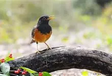 黑胸鸫属中型鸟类,体长20-30厘米。雄鸟整个头、颈、胸黑色,其余上体暗灰色,下体橙棕色,极为醒目。嘴、脚蜡黄色。雌鸟上体橄榄褐色,颏、喉白色,上胸橄榄褐色具黑色斑点,其余与雄鸟相似。…全部>>