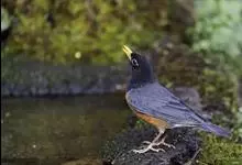 黑胸鸫属中型鸟类,体长20-30厘米。雄鸟整个头、颈、胸黑色,其余上体暗灰色,下体橙棕色,极为醒目。嘴、脚蜡黄色。雌鸟上体橄榄褐色,颏、喉白色,上胸橄榄褐色具黑色斑点,其余与雄鸟相似。…全部>>