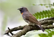 橙胸姬鹟:体长12-16厘米,是一种体型略小的林栖型鹟。尾黑而基部白,上体橄榄褐色,额具一白色横带,两端向上延伸至眼上形成眉斑。翼橄榄色,下体灰。成年雄鸟额上有狭窄白色并具小的深红色项纹,常不明显。…全部>>