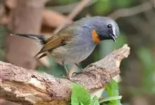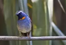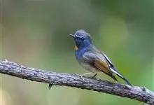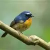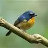 棕胸蓝姬鹟:属小型鸣禽,体长10-13厘米,体重6-10克,是一种体型很小的灰蓝及棕色鹟,雌雄羽色不同,雄鸟羽色艳丽,雌鸟羽色暗淡。雄鸟上体深蓝色,胸橙黄色,下腹灰白色。亚成鸟具褐色斑驳。…全部>>