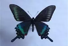 绿带翠凤蝶,又名深山凤蝶,为凤蝶科凤蝶属下的一种。分布于韩国、日本、中国台湾、中国大陆等地。翅黑色,满布金绿色鳞片。前翅亚缘具黄绿色横带纹。后翅外缘有6个略呈新月形的红斑,…全部>>