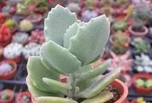 褐斑伽蓝是景天科伽蓝菜属的多年生多肉类植物,茎直立,多分枝,叶生于枝上,肉质叶片匙形,上面密被白色绒毛,下部全缘,叶缘上部有缺刻,缺刻处有深褐或棕色斑块。褐斑伽蓝原产非洲的马达加斯加岛。…全部>>