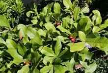 神秘果,山榄科神秘果属典型热带常绿灌木。其树高可达2~5米,叶子是倒披针形或倒卵形;花开叶腋,花是乳白色或淡黄色的,全年开花,花有淡香气味。果实成熟后呈鲜红色。花期2~5月,果期4~7月。…全部>>