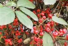 火棘 H. L. Li)是蔷薇科火棘属常绿灌木,老枝呈暗褐色;叶片呈倒卵形,边缘有钝锯齿,齿尖向内弯,两面皆无毛;叶柄短,无毛或嫩时有柔毛;花序是复伞房状,花瓣呈白色近圆形;果球近圆形,…全部>>