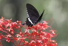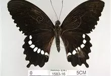 玉斑凤蝶Papilio helenus 别名白纹凤蝶,是凤蝶科凤蝶属美凤蝶亚属大型种类。雌雄同型;体翅皆黑色,后翅正面中室外有3个并列的白色斑,亚外缘有1列模糊的新月形红色斑,…全部>>