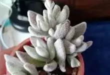 福兔耳是景天科伽蓝菜属的多肉植物,野外分布于非洲马达加斯加中部。植株叶片对生,长梭型,整个叶片及茎干密布白色绒毛。花期较长。喜阳光充足的环境,夏季要适当遮荫,不能过于荫蔽。喜温暖,…全部>>