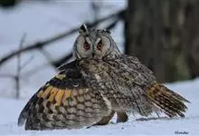 长耳鸮是鸱鸮科、耳鸮属鸟类。体长33-40厘米,体重208-326克。是一种中等体型的林地鸮,具有突出的耳毛。体色为褐色而斑驳;面盘皮黄色,中央具明显的浅色“X”图形;上体褐色,…全部>>