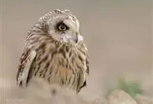 短耳鸮又名小耳木兔、田猫王、夜猫子等,是鸮形目鸱鸮科耳鸮属中小型猛禽动物。成鸟面盘显著,眼周黑色;眼先及内侧眉纹灰白色,面盘余部棕黄色杂以黑色细羽干纹;耳簇羽短小而几乎不外露,…全部>>