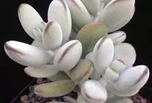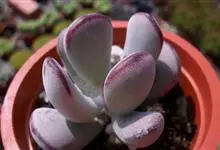 福娘为景天科银波锦属的肉质草本植物。对生的叶片呈短棒状,叶色灰绿,表覆白粉,叶缘外围镶着紫红色,叶片外形多有变化有短圆形、厚厚的方形等不同叶形;花期夏秋。福娘原产于非洲西南部的纳米比亚,…全部>>