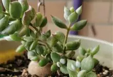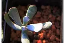 乒乓福娘,植株叶片退化成扁卵状,植株为直立的肉质灌木,能够长高。叶片对生,扁卵型至圆卵形,叶片顶端紫红圆叶尖,叶面有一层白粉。强光下叶片的顶端边缘会较红。初夏开花,聚伞状圆锥花序,花序较高,小花管状…全部>>