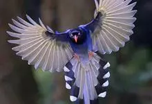 台湾蓝鹊:体长64至65厘米,翼展18至21厘米,尾长约40厘米,尾羽长占了总体长的三分之二。头、脸、颈、喉、胸都是黑色,黄色的眼珠包围黑色的瞳孔,鲜红色的鸟喙、双脚,…全部>>