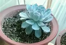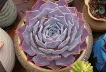 蓝石莲是景天科、拟石莲花属的多肉植物。茎部粗壮,成熟植株茎部木质化。叶片莲座型密集排列,株径不会很大,叶片相对较薄,常年绿色,表面布有白色粉末,中部凹陷,呈倒水滴状。叶尖较尖,叶缘光滑无褶皱,…全部>>
