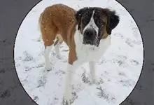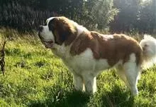 圣伯纳犬,别名巴里汉德,属于大型工作犬,肩高约65~90厘米,体重约50~90千克。圣伯纳犬身体强壮,被毛红褐色和白色相间,头圆而宽大。颈部强壮,胸宽深,背直。前肢长直,腕关节略前倾,后肢腿骨粗壮,…全部>>