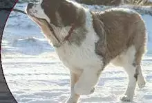 圣伯纳犬,别名巴里汉德,属于大型工作犬,肩高约65~90厘米,体重约50~90千克。圣伯纳犬身体强壮,被毛红褐色和白色相间,头圆而宽大。颈部强壮,胸宽深,背直。前肢长直,腕关节略前倾,后肢腿骨粗壮,…全部>>
