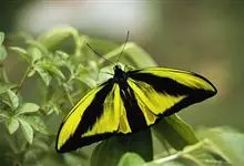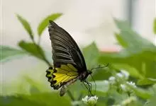 金裳凤蝶是凤蝶科、裳凤蝶属的动物。金裳凤蝶身体呈黑色,头、颈和胸侧有红毛,腹部有黑黄两色相间条纹,雄蝶前翅黑色,具黑天鹅绒光泽,各脉两侧灰白色,后翅金黄色,各室外缘有等腰三角形黑斑1枚,斑内侧有晕,…全部>>