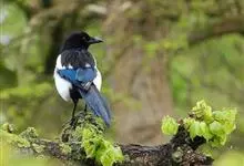 喜鹊:是鸦科、鹊属的一种鸟类。共有11个亚种。体长40-50厘米,雌雄羽色相似,头、颈、背至尾均为黑色,并自前往后分别呈现紫色、绿蓝色、绿色等光泽,双翅黑色而在翼肩有一大形白斑,尾远较翅长,呈楔形,…全部>>