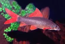 彩虹鲨是鲤形目鲤科野鲮属鱼类,别名红鳍野鲮、红鳍鲨。成鱼体长12厘米,体呈长梭形,侧稍扁。尾鳍呈叉状;背鳍特别宽大,嘴上有两根胡须。鱼体呈浅褐色,各鳍均呈橘红色;雄鱼的臀鳍镶有黑边,…全部>>