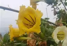 金杯藤 P.S. Green)是茄科、金杯藤属多年生常绿大型藤本。茎及枝条粗壮。叶片互生。长椭圆形。先端突尖。叶面有光泽。全株具有毒乳汁。花顶生,单朵或数朵,花苞棒槌状。从绿色转变为淡黄色。…全部>>