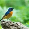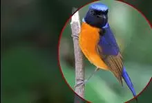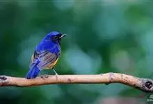 棕腹大仙鹟:体重24-28克,体长15-17厘米,是一种小型的色彩亮丽的鹟。雄鸟上体深蓝,下体棕色,脸黑,额、颈侧小块斑、翼角及腰部亮丽闪辉蓝色。与棕腹仙鹟易混淆,区别在色彩较暗。雌鸟灰褐,…全部>>