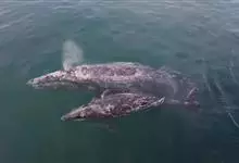 灰鲸,隶属于鲸偶蹄目须鲸亚目灰鲸科,体围比须鲸科的种类大,但比露脊鲸小;它的成体长10至15米,最大体重超过35吨。体形呈纺锤状,躯干粗胖,在鳍肢附近最粗,向尾部逐渐变细。无背鳍,…全部>>