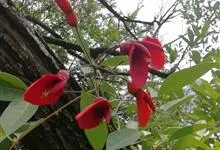 鸡冠刺桐是豆科、刺桐属落叶灌木或小乔木,茎和叶柄稍具皮刺。羽状复叶具3小叶;小叶长卵形或披针状长椭圆形,花与叶同出,总状花序顶生,每节有花1-3朵;花深红色,荚果长约15厘米,褐色,种子间缢缩;种子大,…全部>>