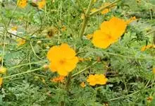 黄秋英是菊科秋英属的一年生草本植物。枝叶为对生的二回羽状复叶,裂片呈披针形;花为舌状花,有单瓣和重瓣两种,颜色多为黄、金黄、橙色,红色;瘦果棕褐色,粗糙有毛,顶端有细长喙;春播花期6-8月,…全部>>