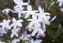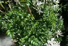 素馨花,木犀科素馨属多年生的攀援灌木植物。攀援灌木,小枝圆柱形,具棱或沟;叶对生,叶轴常具窄翼,小叶片卵形或长卵形;聚伞花序顶生或腋生,花序梗长,苞片线形,花萼无毛,裂片锥状线形,花冠白色,…全部>>