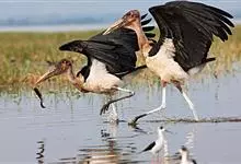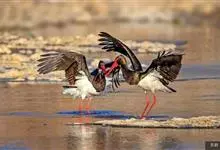 黑鹳是鹳形目鹳科鹳属鸟类,俗称乌鹳、钢鹳、老鹤。黑鹳头、颈和脊均呈黑褐色,故名黑鹳。黑鹳上体羽黑色、并带有绿紫色金属光泽,胸腹部羽白色;嘴、腿均红色;两性相似;成鸟嘴长而直,基部较粗,…全部>>