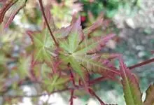 红枫,园艺种,槭树科槭属落叶小乔木,高5~8 m;树冠伞形,枝条开张,细弱。单叶对生,近圆形,薄纸质,掌状7~9深裂,裂深常为全叶片的1/2~1/3,基部心形,裂片卵状长椭圆形至披针形,先端尖,…全部>>