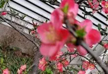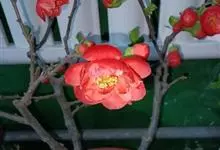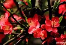 贴梗海棠Nakai)是蔷薇科、木瓜海棠属植物。落叶灌木,高达2米,枝条直立开展,有刺。叶片卵形至椭圆形,稀长椭圆形,长3-9厘米,宽1.5-5厘米。花先叶开放,3-5朵簇生于二年生老枝上。…全部>>