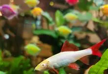 彩虹鲨是鲤形目鲤科野鲮属鱼类,别名红鳍野鲮、红鳍鲨。成鱼体长12厘米,体呈长梭形,侧稍扁。尾鳍呈叉状;背鳍特别宽大,嘴上有两根胡须。鱼体呈浅褐色,各鳍均呈橘红色;雄鱼的臀鳍镶有黑边,…全部>>