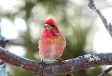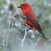 酒红朱雀小型鸟类,体长13~15厘米。雄鸟通体深红色,头部深朱红或棕红色,下背和腰玫瑰红色,眉纹粉红色而具丝绢光泽。两翅和尾黑褐或灰褐色、具暗红色狭缘,内侧两枚三级飞羽具淡粉红色先端。…全部>>