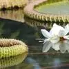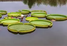 王莲:是睡莲科王莲属植物统称。多年生或一年生大型浮叶草本,有直立的根状短茎和发达的不定须根,白色。拥有巨型奇特似盘的叶片,浮于水面,十分壮观,并以它娇容多变的花色和浓厚的香味闻名于世。夏季开花,单生,…全部>>