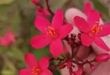 变叶珊瑚花,是大戟科麻风树属常绿灌木。变叶珊瑚花单叶互生,倒阔披针形,叶面为浓绿色,叶背为紫绿色,叶柄具茸毛,叶面平滑,常丛生于枝条顶端;花单性,雌雄同株,花冠红色或粉红色,雌、雄花不同时开放;具乳汁,…全部>>