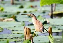 黄苇鳽是鹈形目鹭科苇鳽属鸟类。成鸟顶冠黑色;上体淡黄褐色,下体黄色,下颈基部和上胸具黑褐色块斑;黑色飞羽与黄白色覆羽成强烈对比;虹膜金黄色;眼先裸露呈黄绿色;喙峰黑褐色,…全部>>