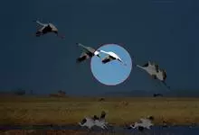 丹顶鹤:是鹤科、鹤属的一种大型涉禽,体长120-160厘米。颈、脚较长,通体大多白色,头顶鲜红色,喉和颈黑色,耳至头枕白色,脚黑色,站立时颈、尾部飞羽和脚黑色,头顶红色,…全部>>