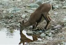 岩羊是偶蹄目牛科岩羊属哺乳动物。颜色与岩石相像,两性皆具角,雄羊角大而弯曲,角外表具不明显的横棱且体壮实,雌羊角短小;头较小,眼大,耳小,颏下无须;体背面为棕灰或石板灰色略有蓝色反光,…全部>>
