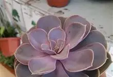 紫珍珠是景天科石莲花属的多年生肉质草本植物。植株中小型;叶片肉质,匙形,呈莲座状紧密排列;叶片粉紫色,叶缘呈粉白色,光照充足时颜色亮丽,不足时叶色会呈现深绿色或灰绿色,叶面光滑,被轻微白粉,…全部>>