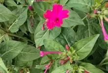 即紫茉莉,英文名:Four-o'clock,Marvel of Peru,为紫茉莉科、紫茉莉属多年生草本植物,一年生栽培。株高50~80cm。根粗壮,茎多分枝而散生。叶对生,卵形或心脏形。花数朵簇生…全部>>