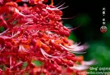 石蒜 Herb.):鳞茎近球形。秋季出叶,叶狭带状,顶端钝,深绿色,中间有粉绿色带;花茎高约30厘米;总苞片2枚,披针形;长约35厘米,宽约05厘米;伞形花序有花4-7朵;花鲜红色;花被裂片狭倒披针…全部>>