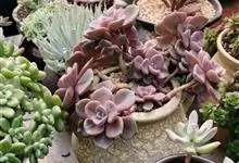 紫珍珠是景天科石莲花属的多年生肉质草本植物。植株中小型;叶片肉质,匙形,呈莲座状紧密排列;叶片粉紫色,叶缘呈粉白色,光照充足时颜色亮丽,不足时叶色会呈现深绿色或灰绿色,叶面光滑,被轻微白粉,…全部>>