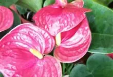 花烛,别名红鹅掌、红掌、安祖花等,为天南星科花烛属的一种多年生草本植物。其茎矮;叶互生,叶片革质,有光泽,阔心形、圆心形,先端钝或渐尖,基部深心形;肉穗花序有细长花序梗,佛焰苞深红色或橘红色,…全部>>